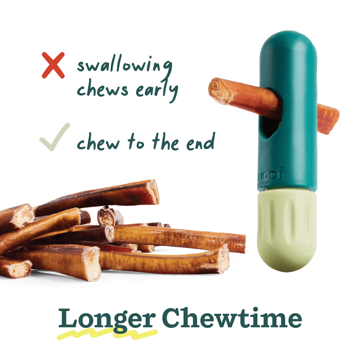 The easy-to-use, adjustable design fits chews of all sizes, and it’s a perfect fit with all-natural Woof Collagen Chews!